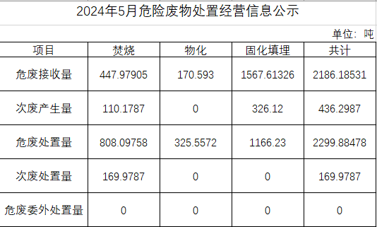 5月危險廢物處置經(jīng)營信息公示